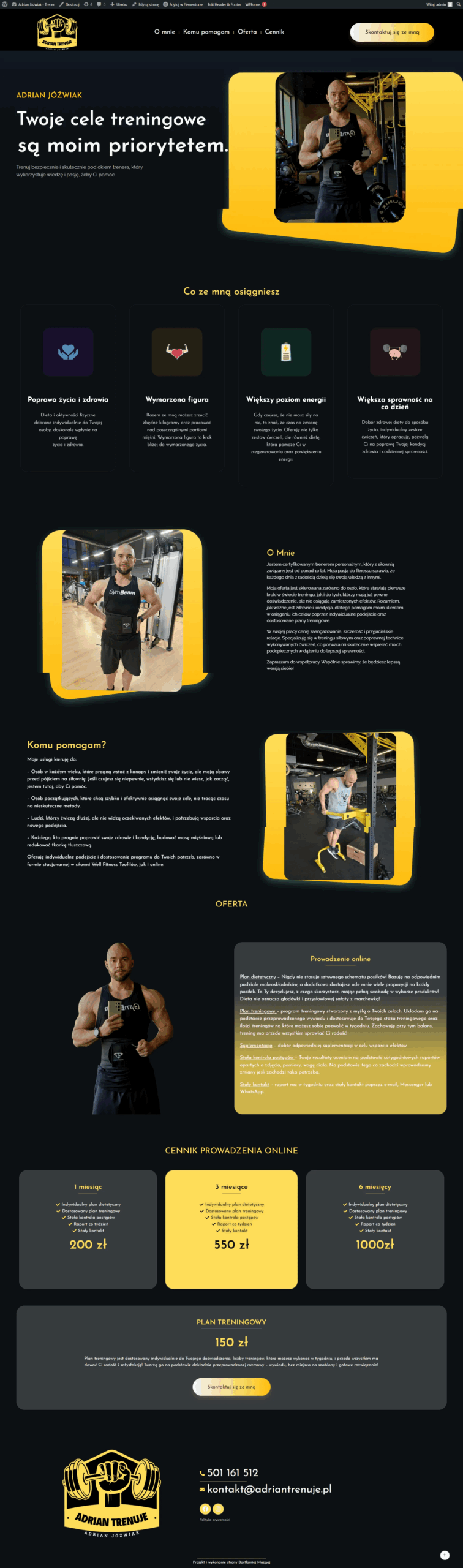 Strona trenera personalnego Adriana Jóźwiaka. Strona przedstawiająca ofertę oraz ułatwiająca kontakt.